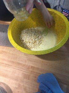 Amish corn pudding (with a little help from my grandson!)