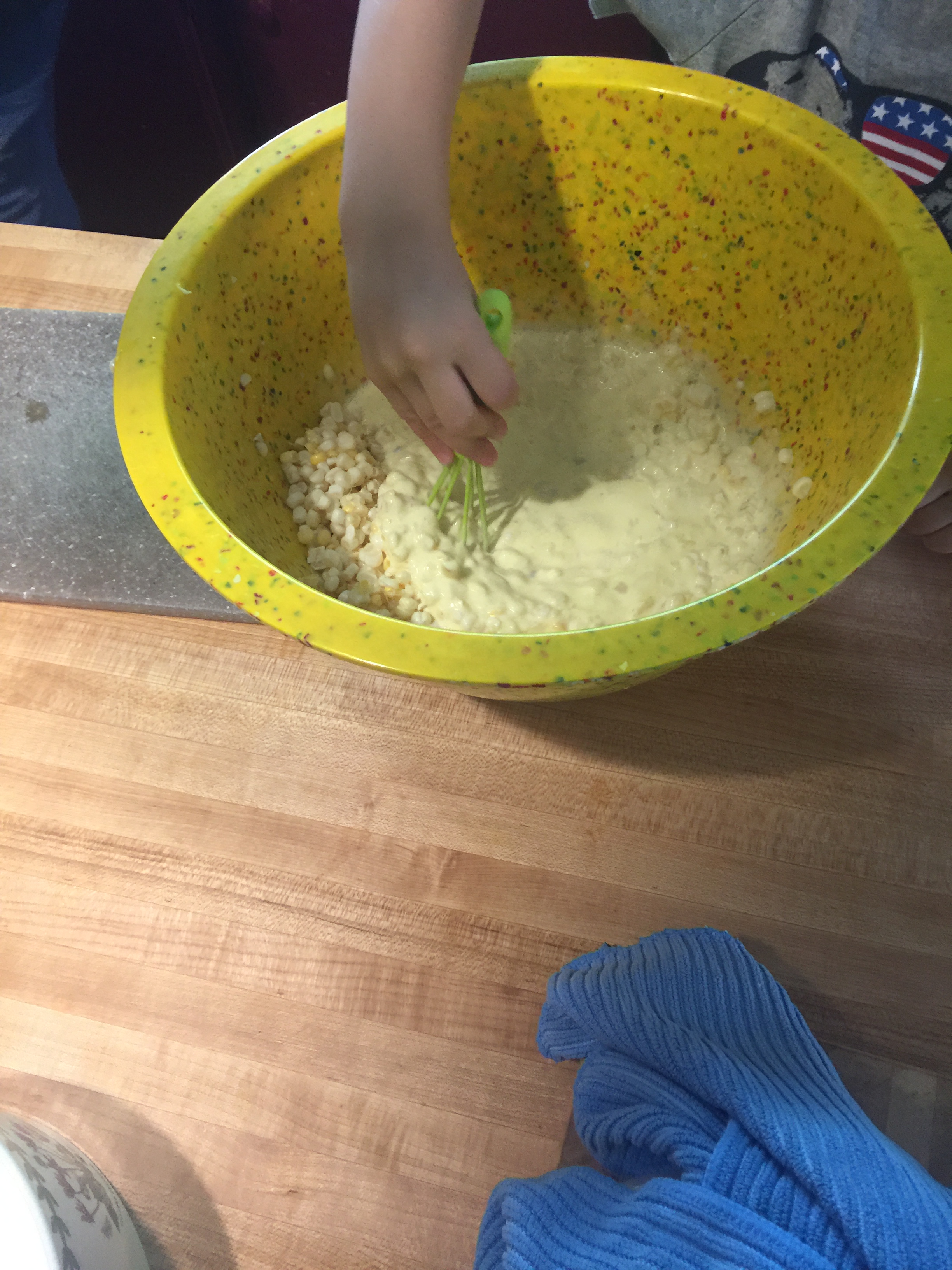 Amish corn pudding (with a little help from my grandson!)