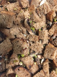 Savory bread pudding with leeks and mushrooms